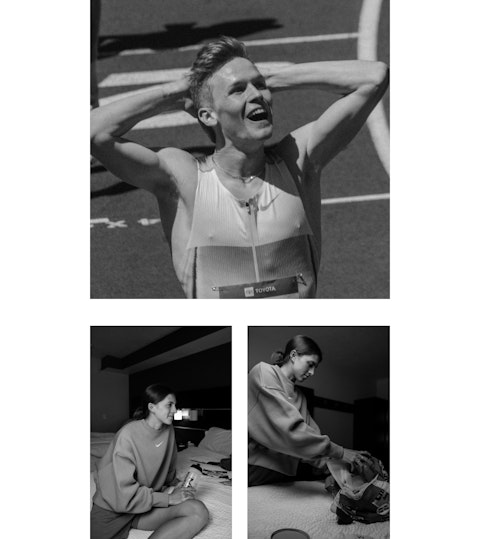 8:00am: I woke up, got dressed and I headed straight to the track at 8:30am for our shakeout. We normally will do just a 10-minute shakeout on race day, but since we had multiple races and a day off the day before, we did the shakeout and some more activations. That included some drills and a fast 150. We did that just to get a little bit more activated today since we hadn't done anything the day before.