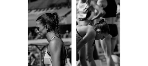 11:15am: I left for the track and got there around 11:30 and first just went straight to the check-in tent to see when our call time was for the race. Then I went back to where my coach and our other athletes were hanging out before you have to warm up, just behind the track. And I basically just sat there and listened to music — things like Bulletproof by La Roux.